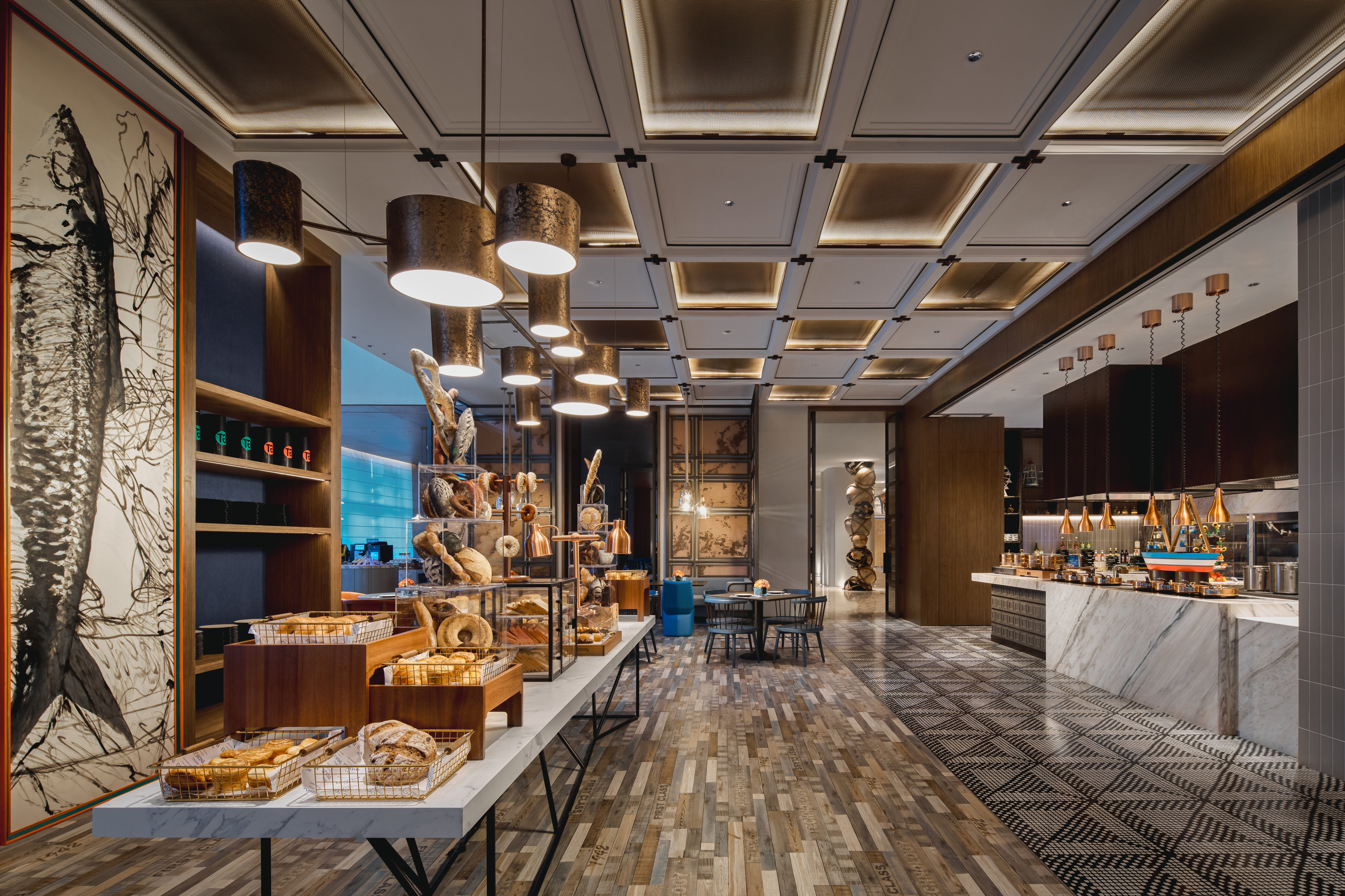 在碧波万顷之间,烟台金沙滩旅游度假区如一颗璀璨的明珠,镶嵌在海洋的怀抱中。这里,不仅是自然的馈赠,更是千年历史的积淀。烟台金沙滩英迪格酒店正位於此,依海而筑,像一艘巨轮扬帆航行。设计巧妙融合了历史悠久的牧海文化、灵动深邃的海洋元素和地方自然与人文风情,让邻间文化交织绽放。这里,是心灵的驿站,也是探索的起点。步入大堂,宛若进入流动的海森世界,色彩斑斓而生机盎然。闯海精神的坚韧与活力、“海滋幻影”的神奇与壮美、“雪窝”的纯净、敬海传统渔灯节的仪式感,以及草编、绒綉、棒槌花边等非遗文化元素,亦依次在酒店各个空间缓缓展开,彷佛漫步在绵延的海岸网上,耳畔是渔人号角的悠扬旋律,心间是沧海桑田的变迁,一场别开生面的新旅程正等待您的开启。